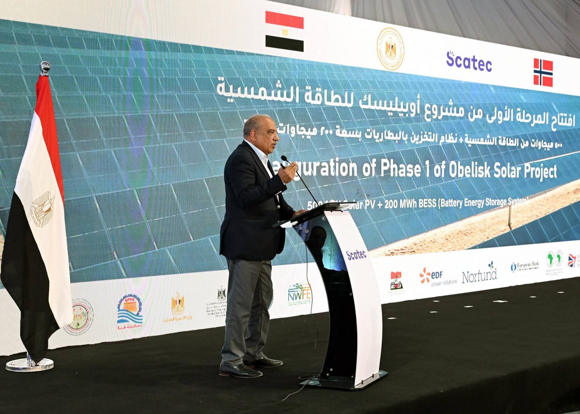 وأعرب السيد/ محمد عامر، نائب الرئيس التنفيذي لشركة سكاتك لمنطقة مصر والشرق الأوسط، عن سعادته اليوم بافتتاح المرحلة الأولى من مشروع أوبيليسك للطاقة الشمسية بمحافظة قنا، والذي يعد أكبر محطة توليد كهرباء مدمجة بأنظمة بطاريات لتخزين الطاقة في أفريقيا، باستثمارات أجنبية تُقدَّر بنحو 600 مليون دولار.