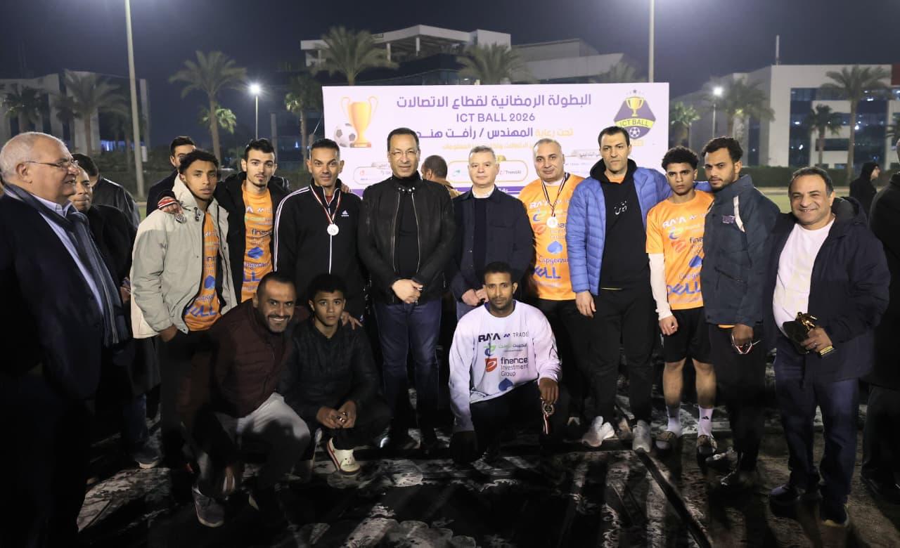 تحت شعار " شجع فريق شركتك" شهد المهندس رأفت هندي، وزير الاتصالات وتكنولوجيا المعلومات، حفل ختام البطولة الرمضانية لقطاع الاتصالات وتكنولوجيا المعلومات ICTBALL 2026 في نسختها الثامنة عشرة، حيث جرى تتويج الفريق الفائز بكأس البطولة، وذلك بمشاركة أكثر من 30 شركة عالمية ومحلية إلى جانب عدد من الهيئات والمؤسسات الحكومية.